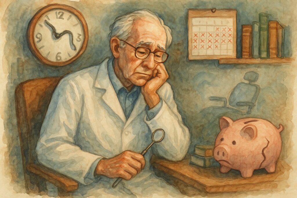 Your retirement timing depends on when you can sell your practice and market conditions. Buyer availability in your area affects your ability to retire.