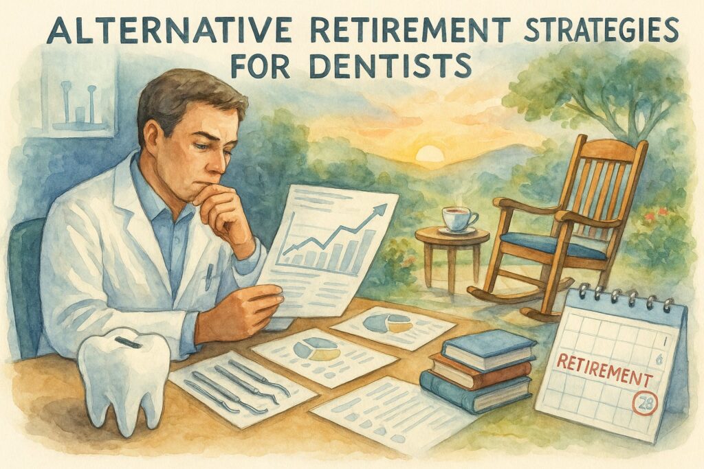 - Practice sale to another dentist: Provides lump sum proceeds but requires finding qualified buyers