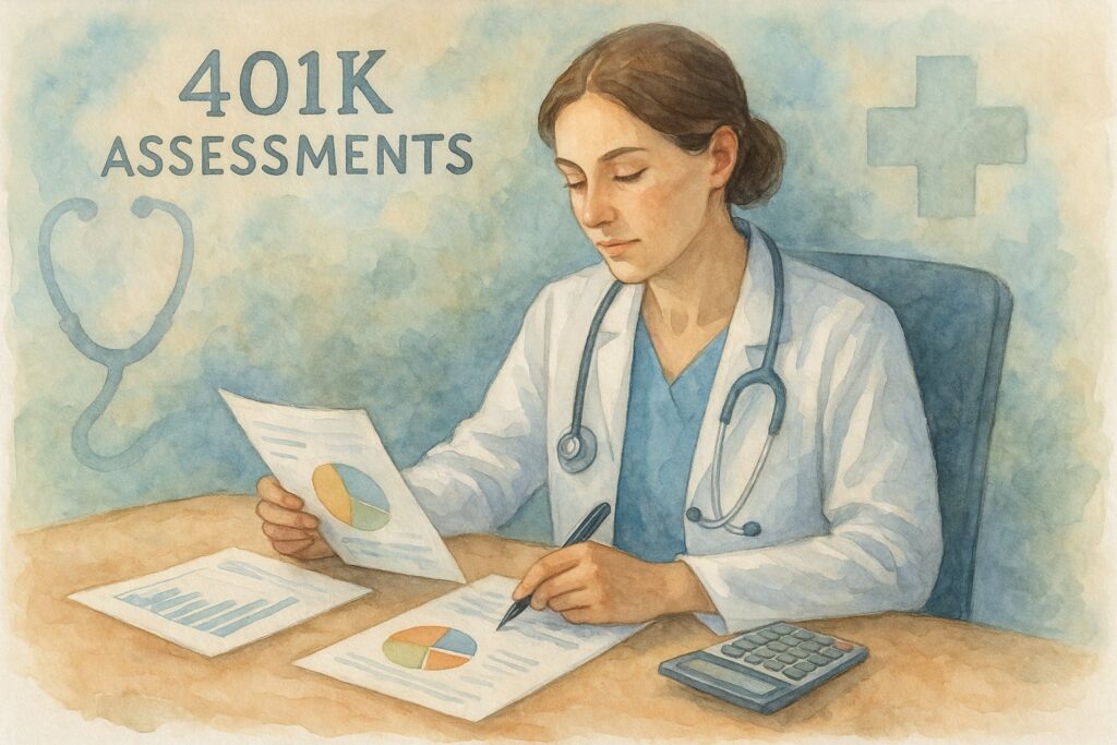 What specific factors should healthcare professionals consider when assessing their 401(k) plan?
